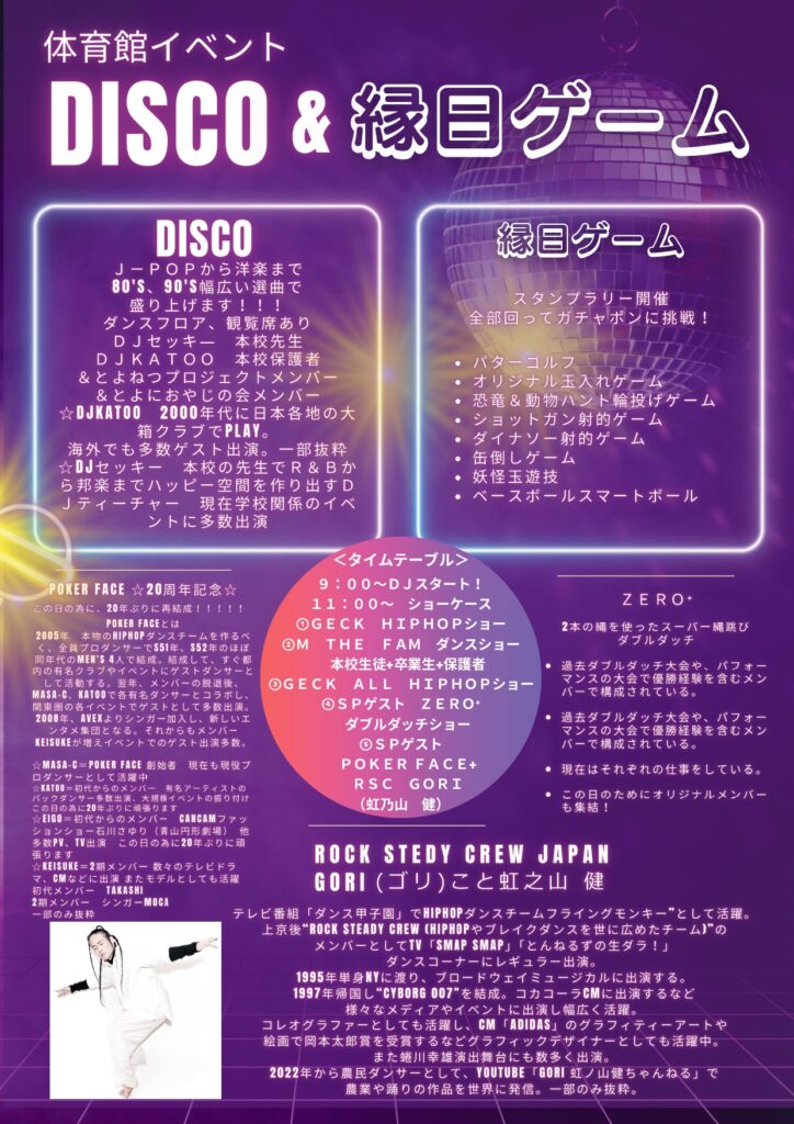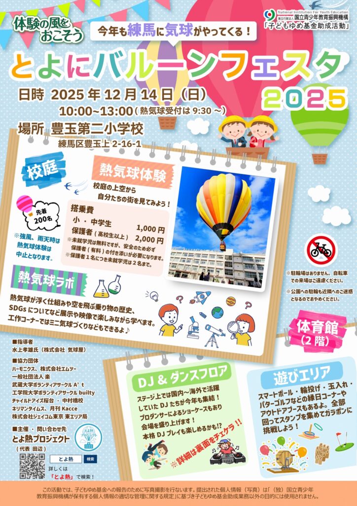 熱気球搭乗以外にも、体育館でのダンス・縁日ゲームなどいろいろ楽しそうなイベントです。